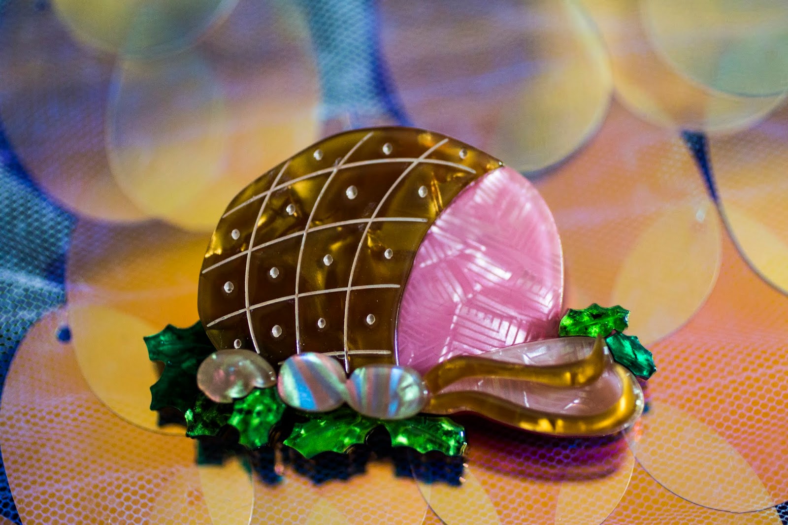 This year we have reverted back to a full sized brooch and what a brooch. By that I mean it is going to be a complete marmite piece. I think you are either going to love it or hate it. Gifted Glaze is this years free gift and it's is a glazed ham. I would love to know what you all think about this, and if it would tempt you to buy another brooch or two to nab it.