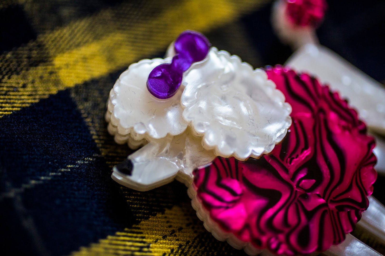 After seeing a couple of the sneak peeks earlier in the week I was a little underwhelmed I must admit, that was of course until I started to photograph them. The colours and resins of some of these brooches are just beautiful.