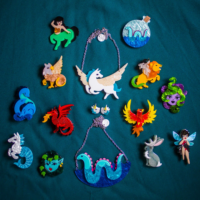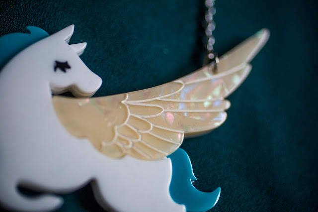 The size of both the necklaces is great, I love a large necklace and these look brilliant and vibrant. I must also say the acrylic of the wings on Pegasys is incredible! I have tried to photograph that to the best of my ability but it really needs to be seen in real life.
