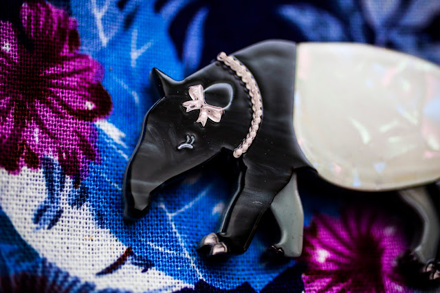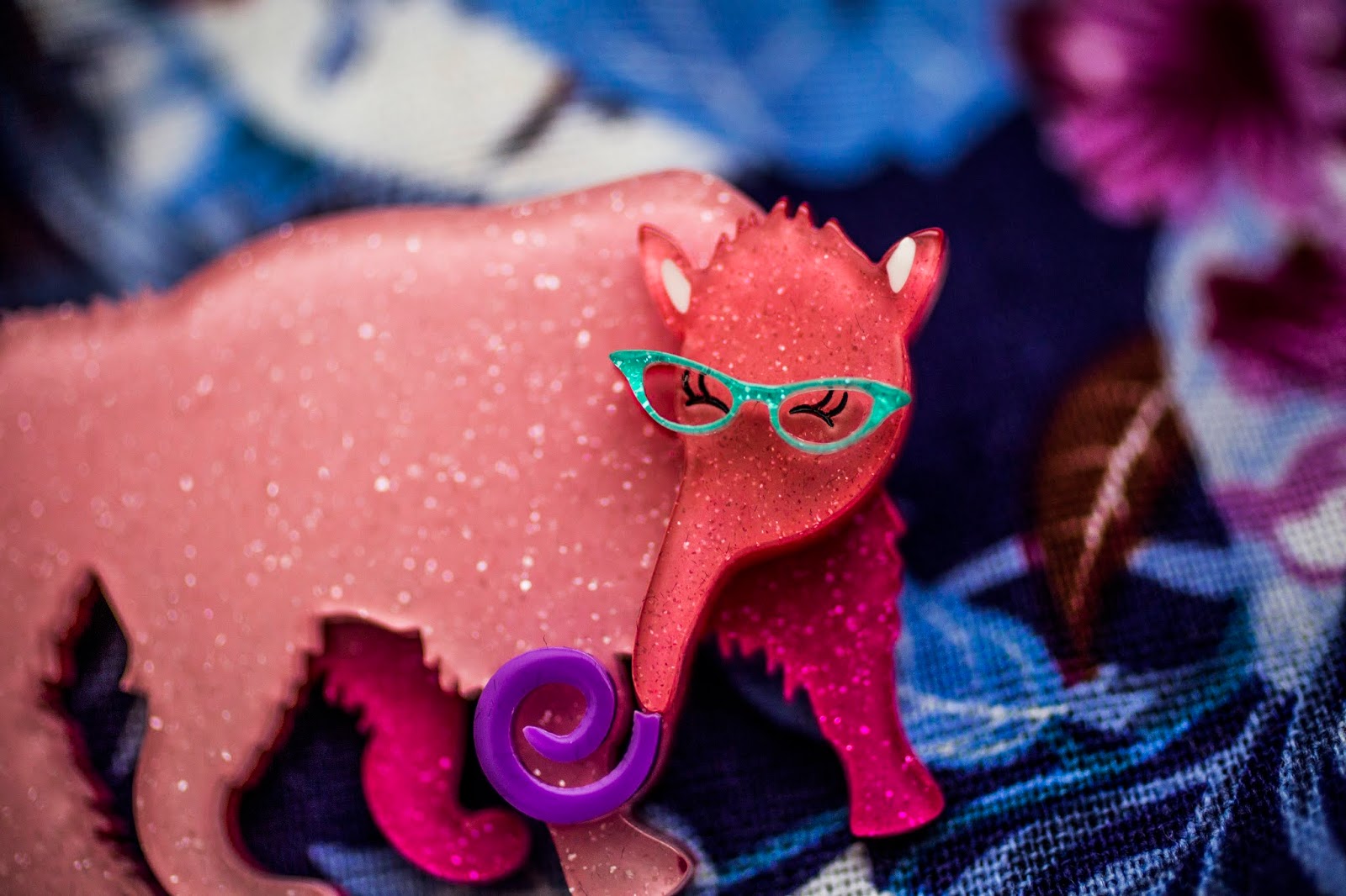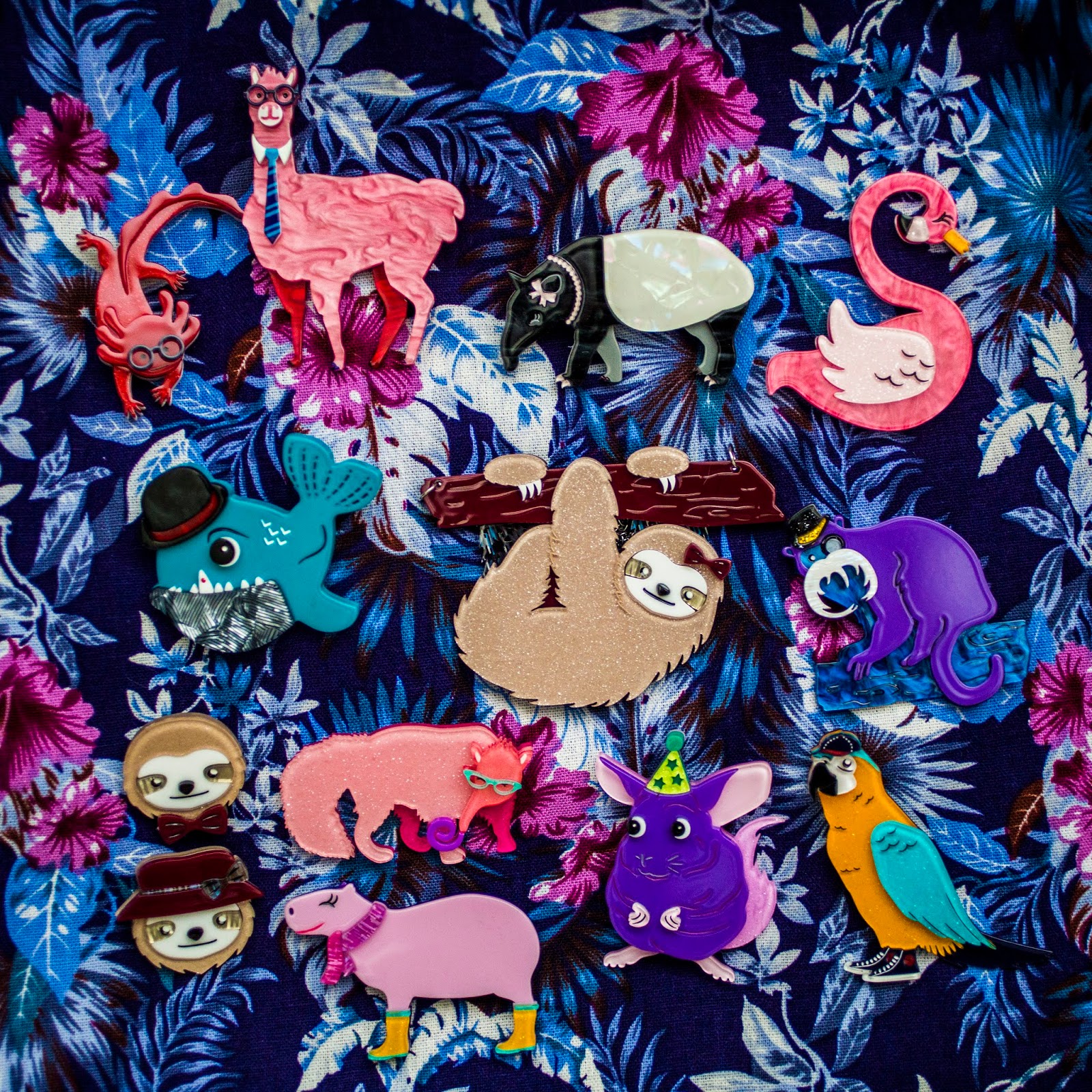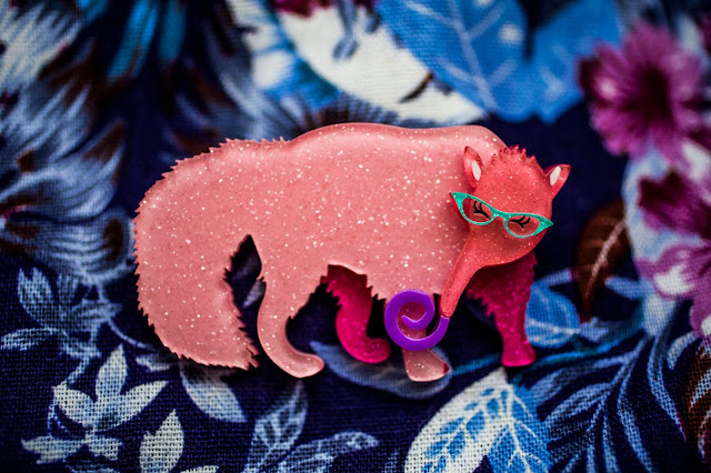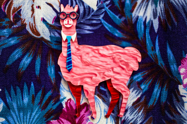 It was a really hard decision for me to pick my three favourite brooches this time around and I kept swaying between designs. Finally I have settled on my top three, in no particular order. Alan the Alpaca. He is larger than the rest of the collection and for this he comes in a slightly larger box, which for some reason always makes me happy. The resin on him is beautiful in the light and I really like his little specs and tie.