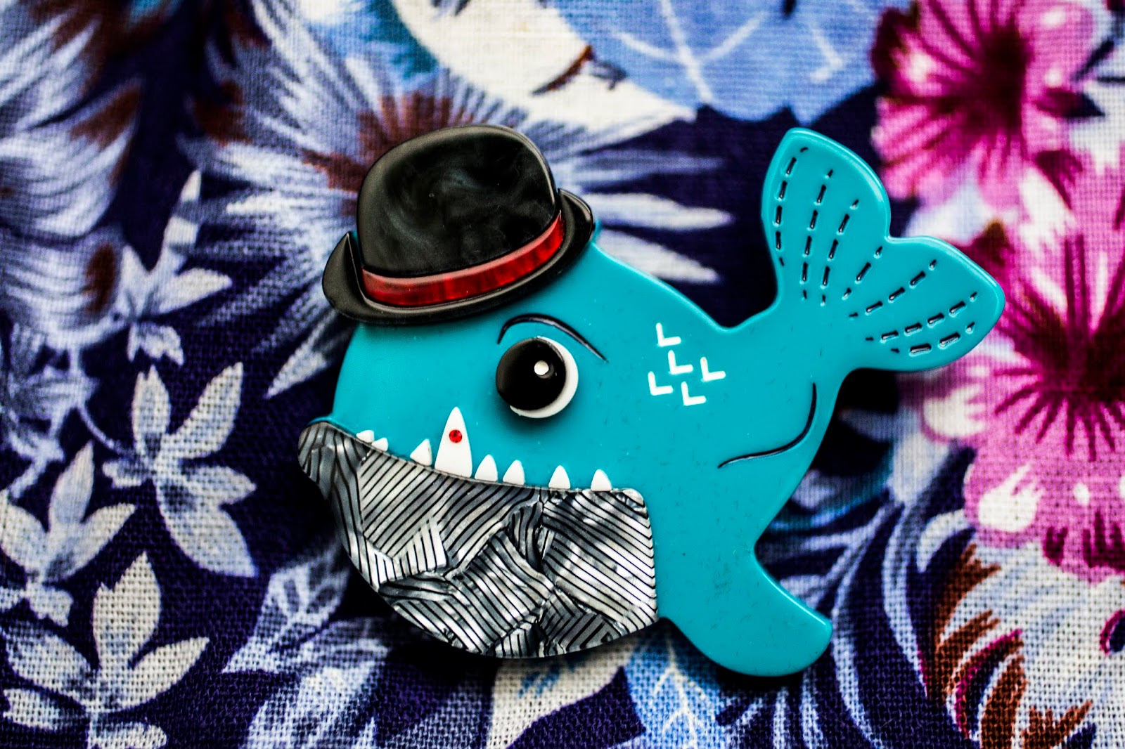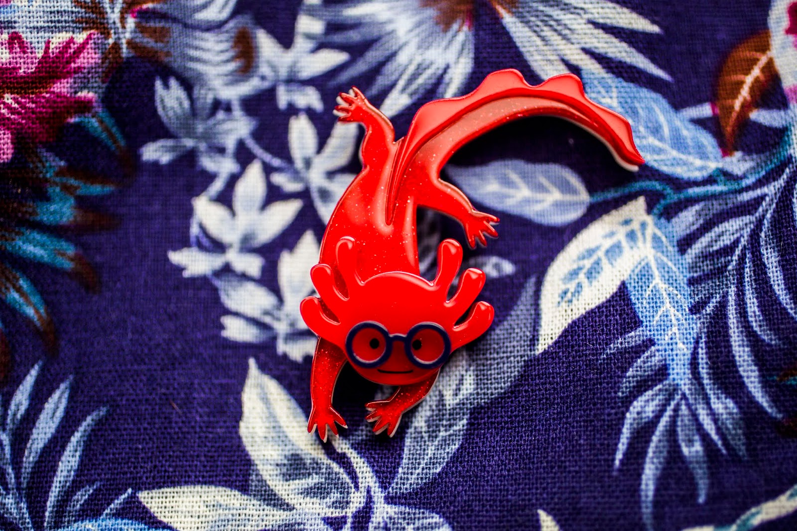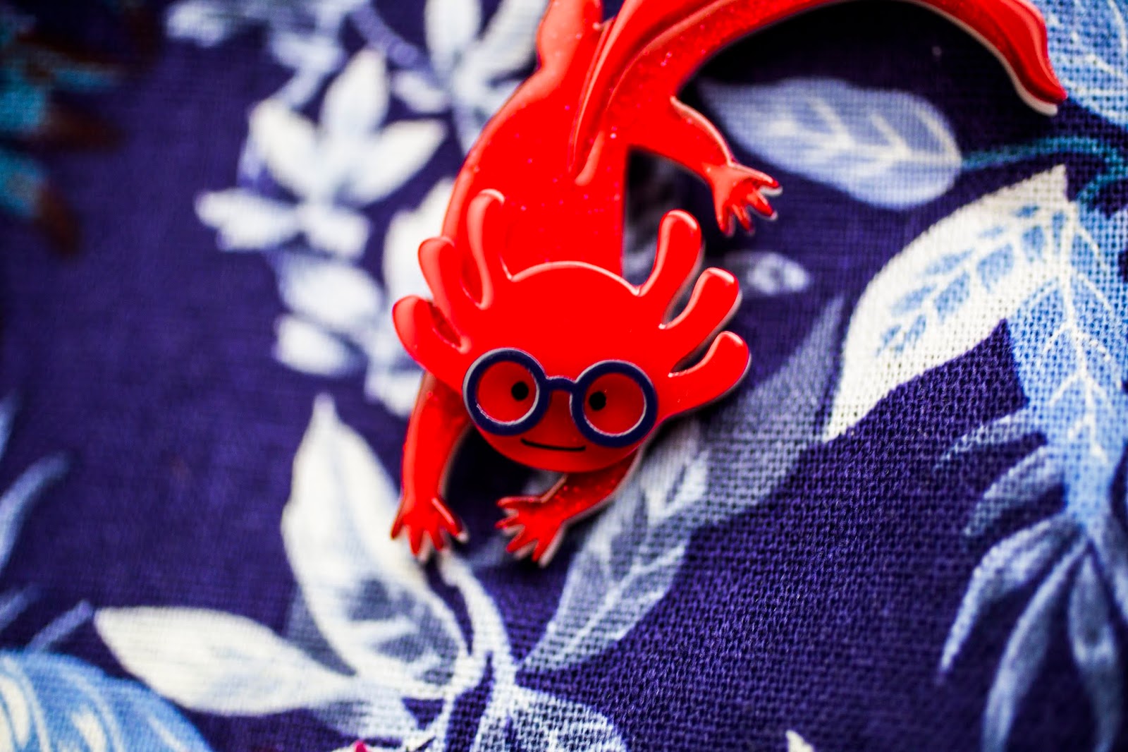It was a really hard decision for me to pick my three favourite brooches this time around and I kept swaying between designs. Finally I have settled on my top three, in no particular order. Alan the Alpaca. He is larger than the rest of the collection and for this he comes in a slightly larger box, which for some reason always makes me happy. The resin on him is beautiful in the light and I really like his little specs and tie.