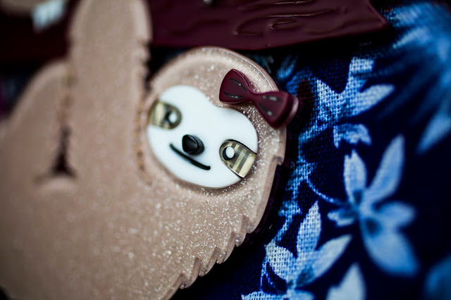 Now onto the collection itself. I'll start with the necklace. Necklaces are always my thing, I find them easier to wear everyday rather than brooches, so in any collection this is the item I gravitate to first. This one is a super cute little sloth hanging from a tree. It's been so long since Erstwilder have us a sloth and this one looks nothing like previous designs so its a great additions.
