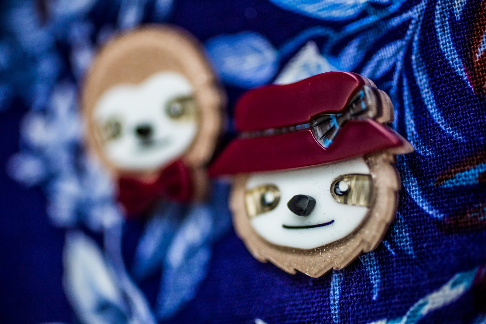 White we are talking about sloths they also feature in the brooch pile this time. Opening the box I assumed they were a set of cardigan clips, but after looking a bit more closely they are just two smaller brooches sold together as a set. I love that idea. Cardigan clips are great but I always struggle to wear them properly and end up just being left out. That is why this is great, you have so many options to wear both in different places, or even if you just wanted to wear one smaller brooch for the day then one of these is perfect.