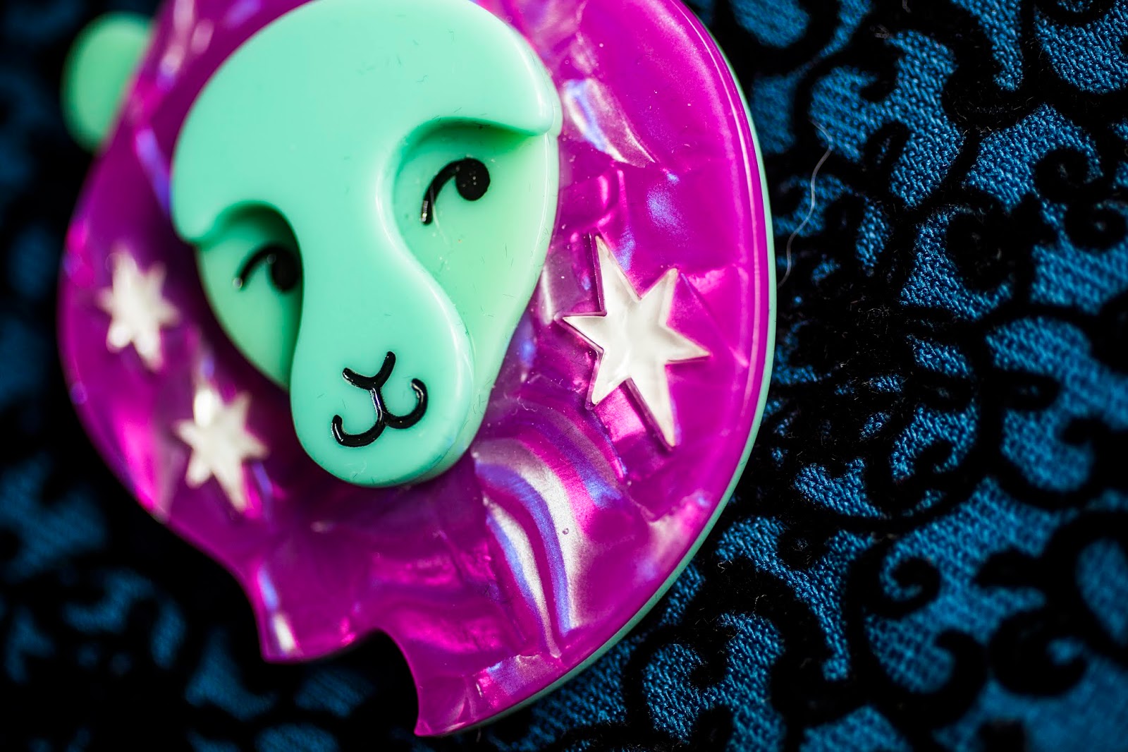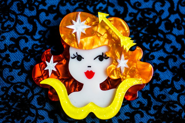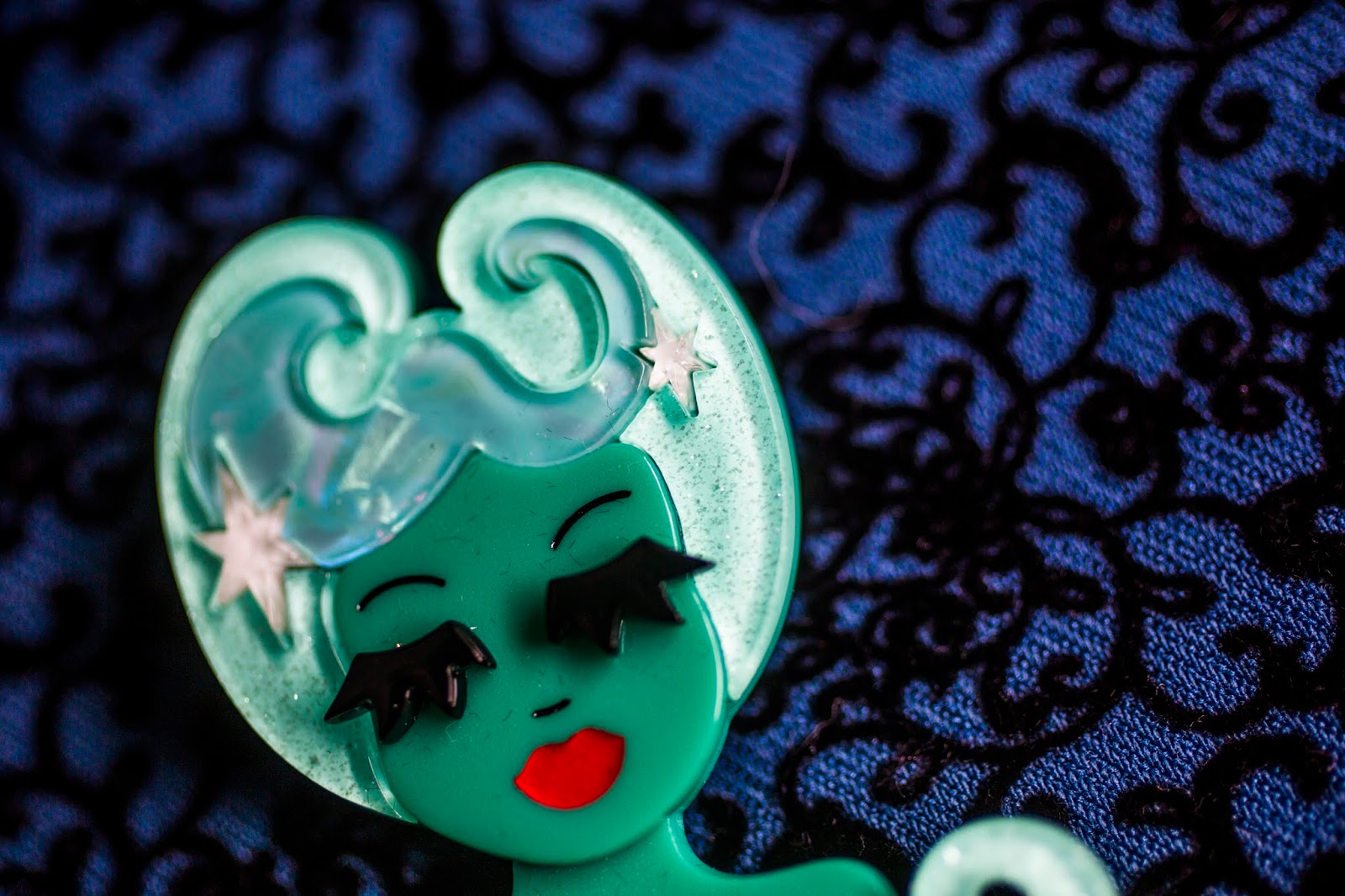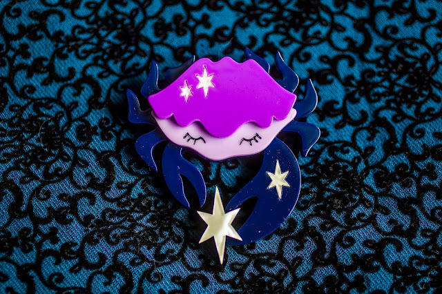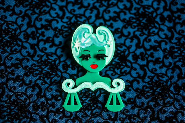 My top three from this collection has to be Virgo - her design and colours are simply gorgeous. The Pieces - I have a bit of a thing about this design and the choices of resin on this just make it a gorgeous brooch. Lastly we have Libra - there is something very medusa about her and its blooming amazing.