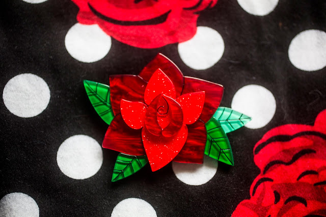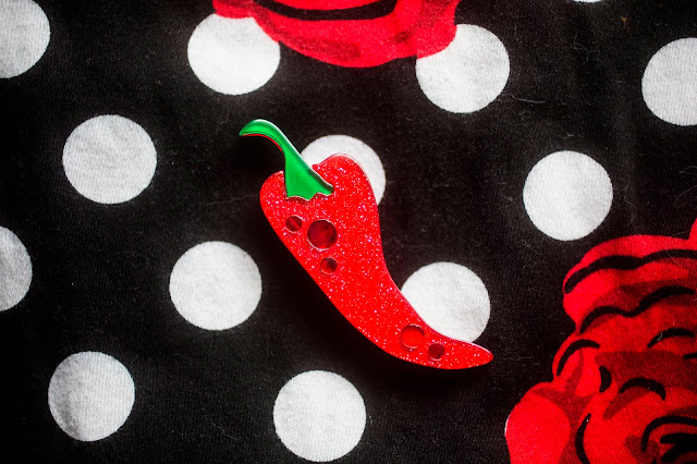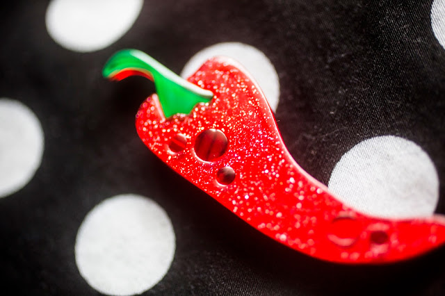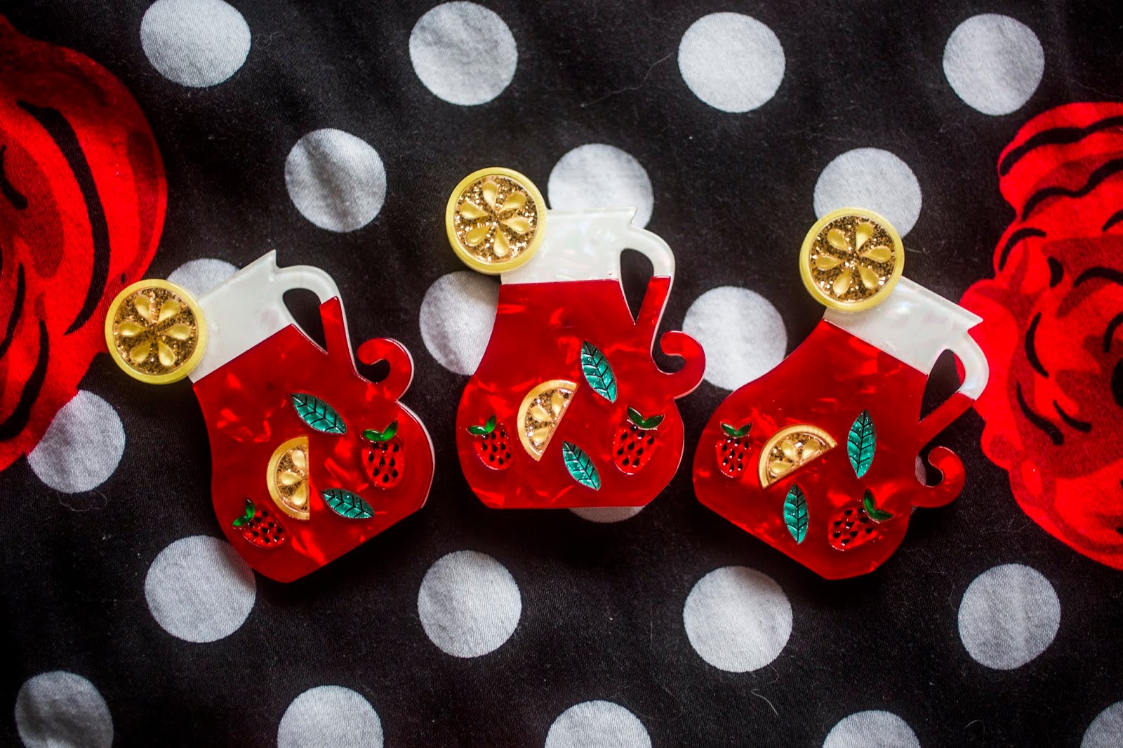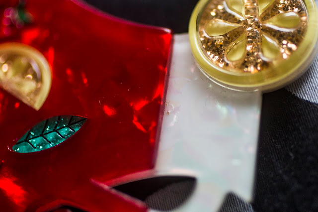 One of the specific brooches I wanted to talk about is the Sangria brooch. Erstwilder have announced that there was a slight flaw in the production of these brooches, which is why you might have noticed a slight reduction in price in comparison to the others in the collection.